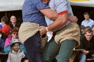 Frühjahrsschwinget Cham ZG, 11.04.2010Der Schlussgang zwischen Bruno Müller und Ady Tschümperlin endete unetschieden. retour à l‘aperçu