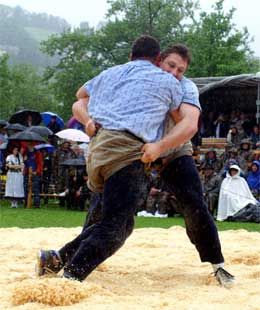 Bild rechts: Jörg Abderhalden gegen Bruno Fäh. (Bild: Peter Bruhin).