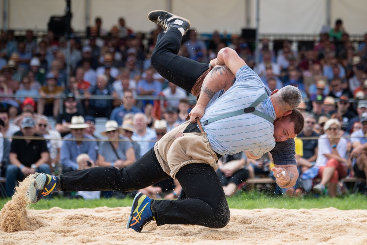 Samuel Giger siegt im Schlussgang gegen Matthias Aeschbacher mit Nackenhebel, nach einer Gangdauer von 6.35 Minuten. Zuvor war der Kampf äusserst offen geführt. Ganz anders im Anschwingen, als Giger mit Kurz nach kurzer Gangdauer Aeschbacher bereits ein erstes Mal bezwingen konnte. In überzeugender Manier gewinnen konnte Giger auch gegen die Eidgenossen Roger Rychen und Patrick Räbmatter, so dass er sich im Kampf um den Schlussgang einen Gestellten mit Samir Leuppi leisten konnte. Auf dem Ehrenplatz reihte sich Gigers Clubkollege Domenic Schneider ein. Im dritten Rang klassierten sich u.a. Damian Ott und Michael Bless. Letzterer kehrte von einer Verletzung zurück und zeigte sich aktiv. Den Kranzrang sicherte er sich mit einer siegbringenden Kombination aus Kreuzgriff und Kniestich gegen den Südwestschweizer Ivan Mollet. Gleich dahinter reihte sich der Winterthurer Beda Arztmann ein. Er bezwang in einem Abnützungskampf nur Sekunden vor Ablauf der Gangdauer Patrick Räbmatter mit Kurz/Fussstich platt. Seine Kranzsammlung mit allen Teilverbands- und Bergkränzen komplettieren konnte der Giswiler Benji von Ah.