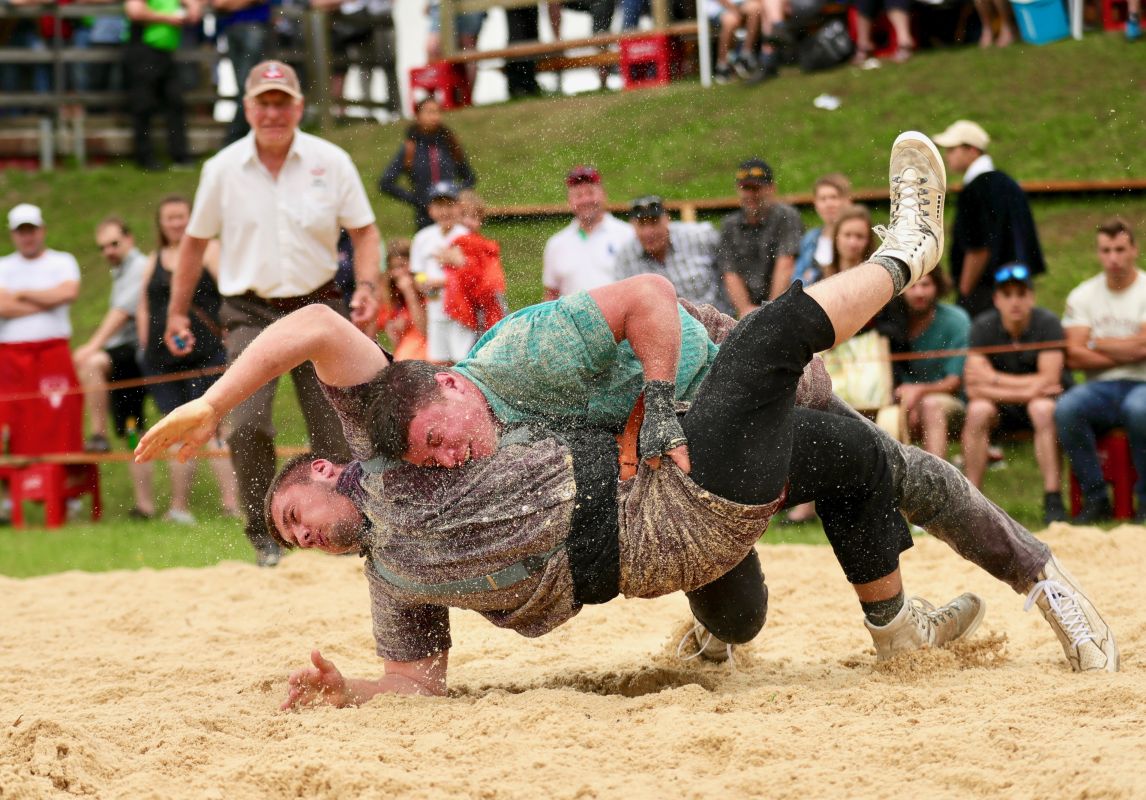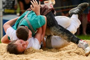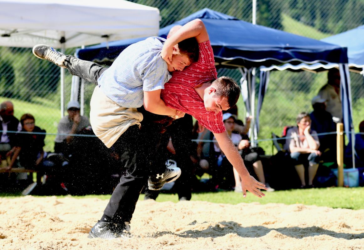C’est à la frontière du canton de Berne dans le beau village de Rougement et sous la présidence de Denis Turrian que se sont déroulent les manifestations. Le soleil était au rendez-vous pour les 186 lutteurs romands. Quelques 800 spectateurs ont participé à cette fête cantonale des jeunes.
