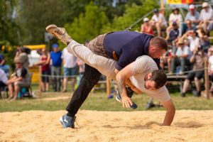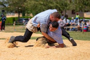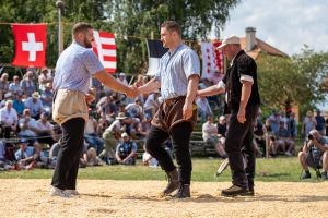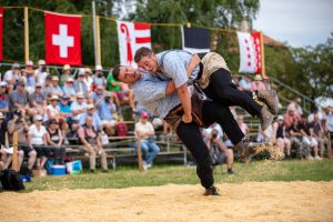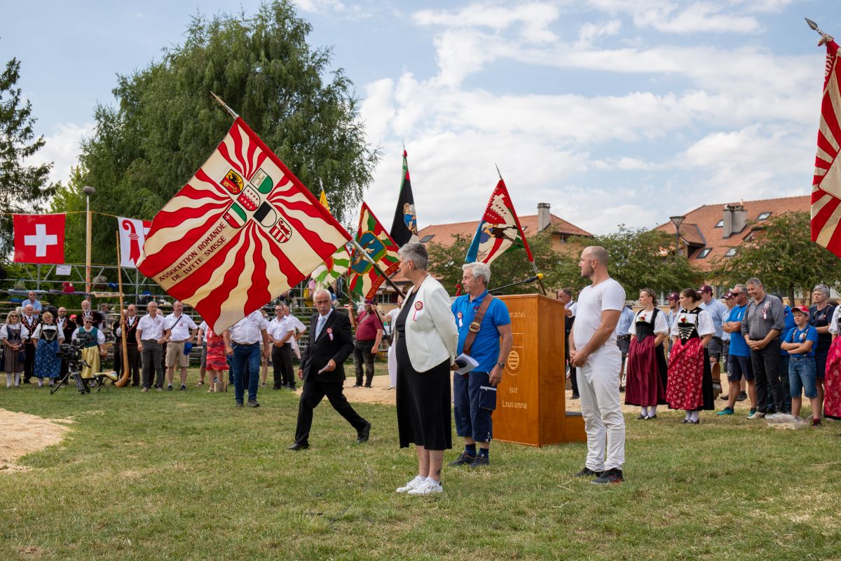 Le comité d’organisation, avec à sa tête Anne Cardinaux, a réussi son pari et organisé une magnifique 138ème fête romande à Romanel-sur-Lausanne. Le club de Lausanne et environs a choisi Romanel, situé entre Lausanne et le Gros-de-Vaud (pourvoyeur majoritaire des lutteurs du club). Après une journée de samedi réservée à la lutte fémine et à la soirée commémorant le 100ème anniversaire du club, le gratin des lutteurs romands et 8 invités de prestige se sont retrouvé dimanche matin sur les ronds de la magnifique place de fête à Romanel. A noter parmi les invités rencontré autour des ronds de sciures, Markus Lauener et Rolf Gasser, respectivement Obmann et secrétaire général de l’association fédérale de lutte, Erika Hess, multiples championnes de ski et Valérie Dittli, conseillère d’Etat du canton de Vaud.