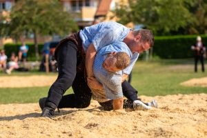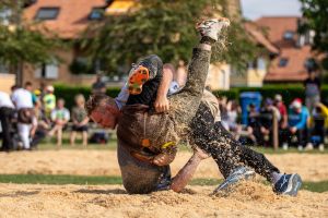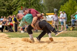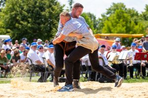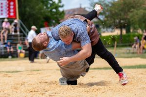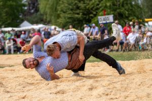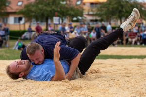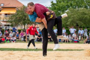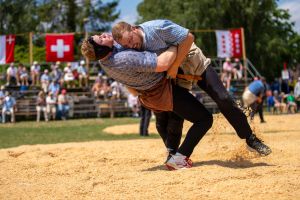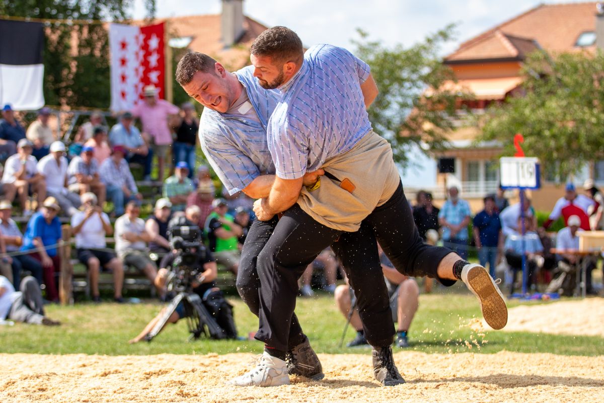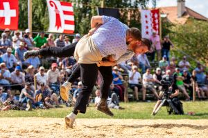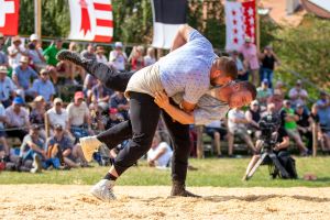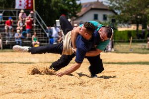 Le lutteur local, Marc Gottofrey, n’a pas été très loin de créer la sensation du jour, malheureusement lors de la cinquième passe il n’a pu faire mieux qu’une passe nulle face à Patrick Gobeli, invité bernois et couronné fédéral. En sixième passe il bat avec une magnifique prise de tête Janis Wieland et termine à la seconde place à cette romande organisé par son club.