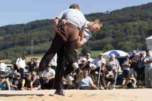 Jahrgänge 2002/2003: Nicola Graf (Oberhallau) besiegt Ramon Baumgartner (Niederglatt SG) mit Brienzer und Überdrücken am Boden.