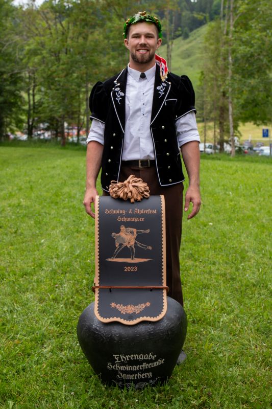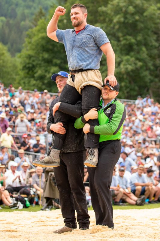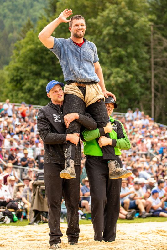 Dans une passe finale entre lutteurs bernois, Staudenmann Fabian et Walther Adrian n’ont pas pu se départager après 12 minutes. Avec 0.25 point d’avance, Staudenmann Fabian remporte toutefois la fête alpestre du Lac-Noir pour la première fois de sa carrière.