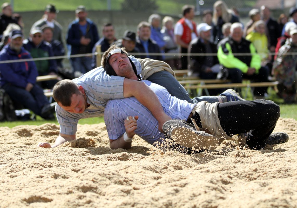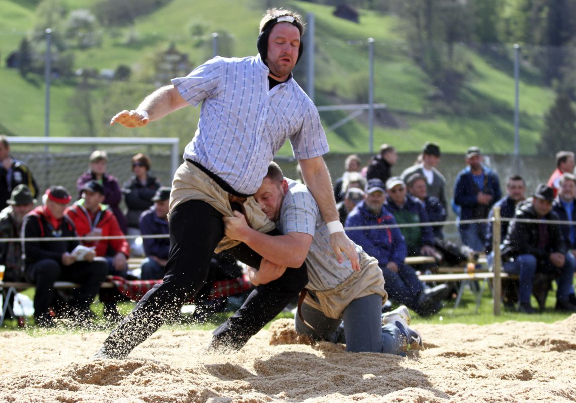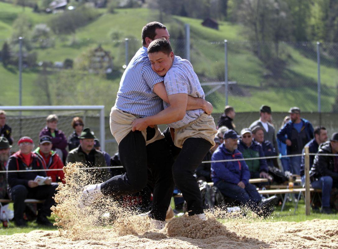 - Ebnat-Kappel SG, 28. April 2019, Schwingen - ToggenburgerVerbandsschwingfest. Daniel Boesch (li, Zuzwil) gegen Kilian von Weissenfluh (re, Hasliberg Hohfluh). (Pascal Schoenenberger)