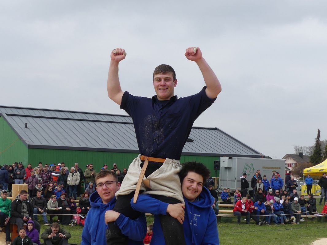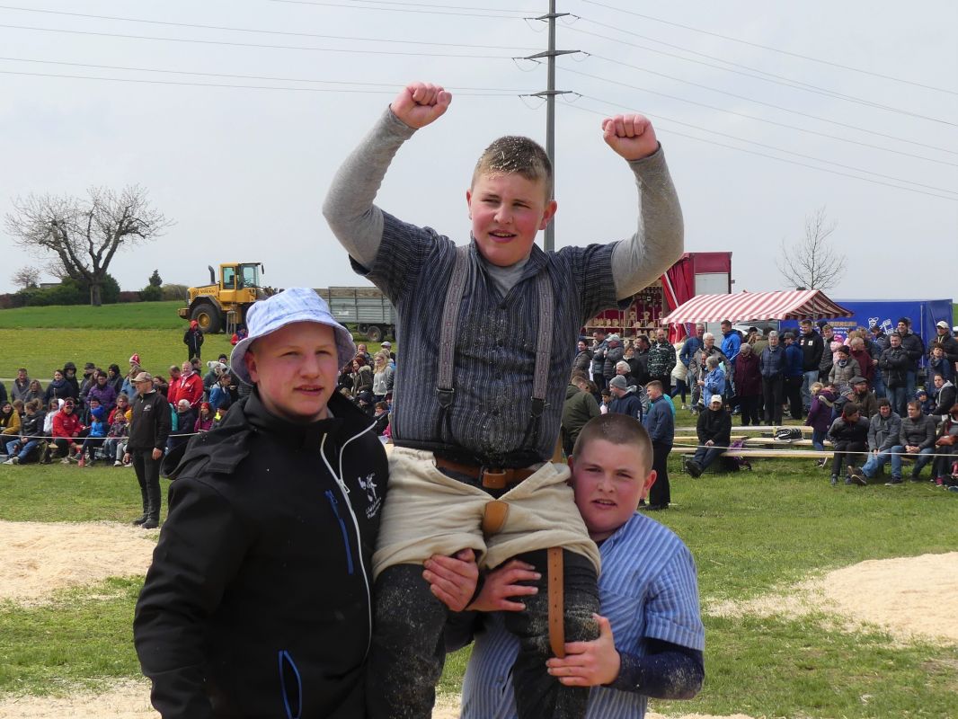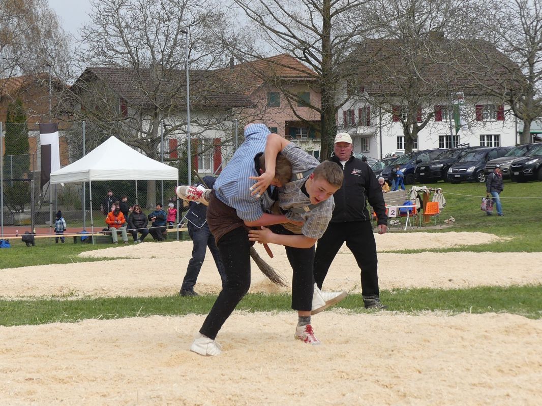 Le régional de l’étape, Sandro Balimann de Finsterhennen, bat Loïc Perret de Boveresse, pour qui s’était une passe supplémentaire, après mois d’une minute de combat. Derrière les deux finalistes, nous retrouvons un autre lutteur du club organisateur, Sven Tschachtli de Kerzers.