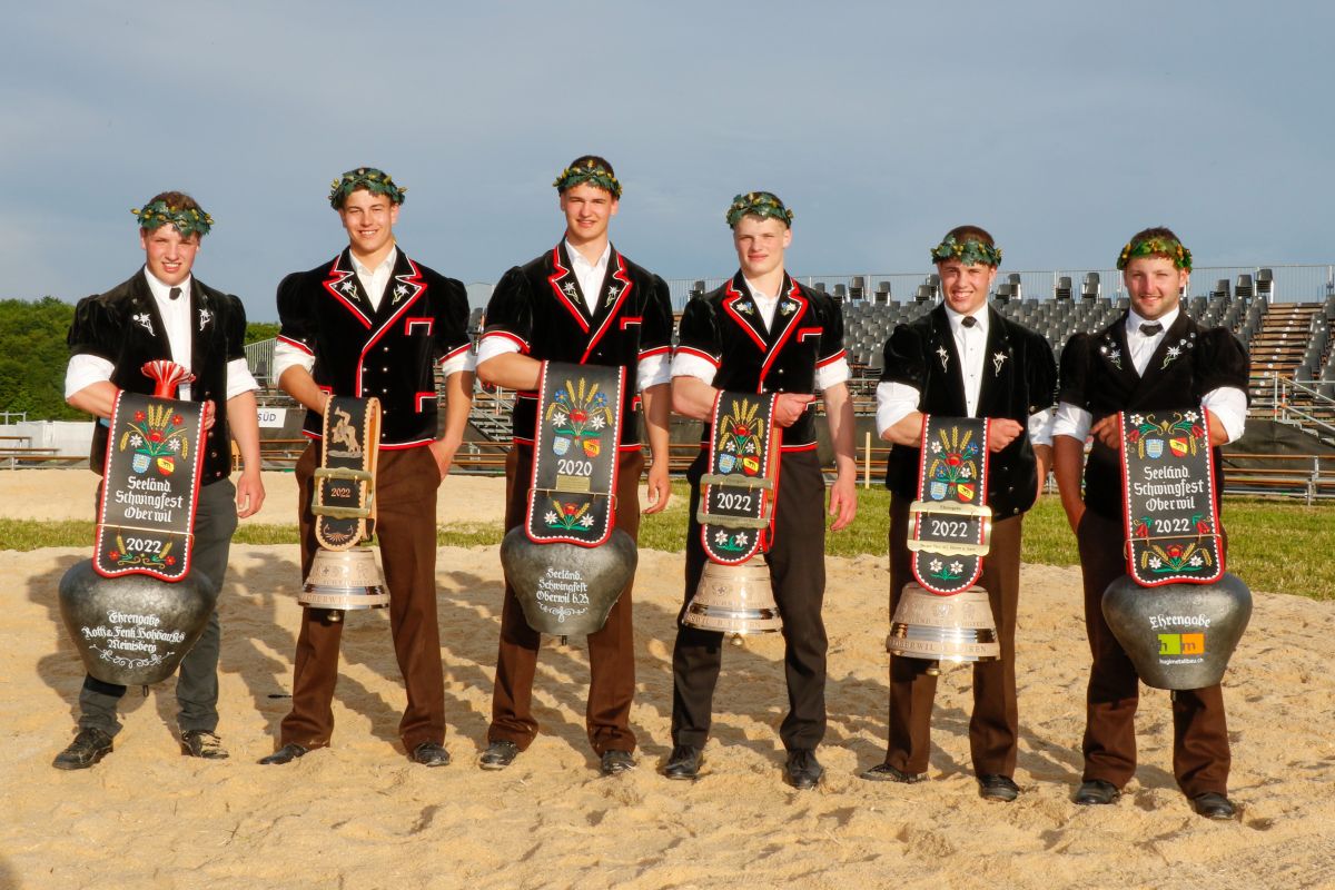 Mit den Gebrüder Adrian und Fabian Aebersold, Reto Thöni, Etienne Burger, Leandro Nägeli und Christian Rüegsegger knieten sechs Schwinger zum ersten Mal vor die Ehrendamen. Die Brüder Aebersold mischten den ganzen Tag über an der Ranglistenspitze mit und klassierten sich im 3. Schlussrang.