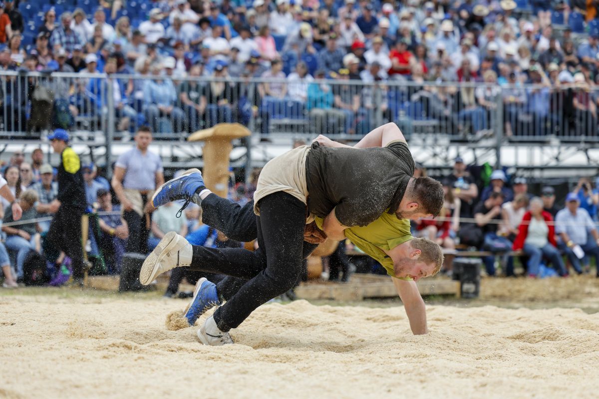 - 15.06.2024, Seeländisches Schwingfest Täuffelen, Staudenmann Fabian (oben) - Burger Matthieu (unten)