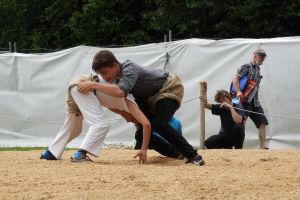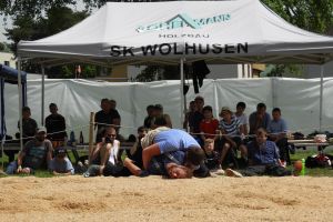Den Schlussgang der zweitältesten Athleten der Kategorie B bestritten die beiden Klubkameraden Zumstein Roman und Wolf Stefan aus Giswil den Schlussgang, wobei Zumstein mit einem Plattwurf als Sieger hervorging.