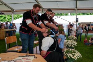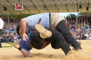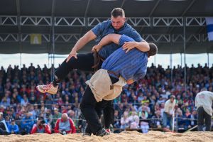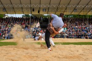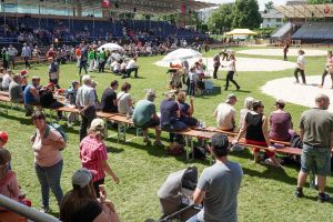 - Traditionelle Umrahmung gehört zu einem Schwingfest.