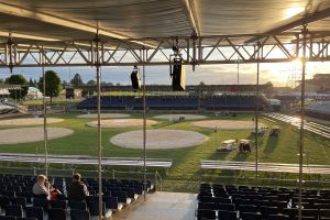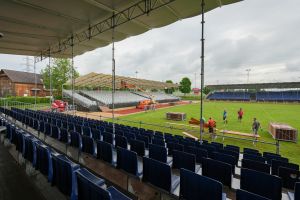 - SF-Baupro-Arena für 7500 Zuschauer im Aufbau. Innert weniger Tage war das Festgelände erstellt.