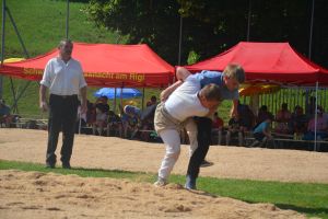 Hitzebedingt blieb der Zuschaueraufmarsch geringer als erwartet. Und auch die Schwingfeststimmung war weniger ausgelassen als auch schon. In der Regel wurde sofort ein schattiges Plätzchen aufgesucht und nur noch verlassen, wenn unbedingt nötig. Wenig erfreulich war die grosse Zahl der Abmeldungen. So verzichteten über 40 ursprünglich angemeldete Schwinger auf einen Start. Die Einteilung unter der Leitung von Obmann Armin auf der Maur konnte mit nur noch 169 Jungschwingern den Wettkampf in Angriff nehmen.