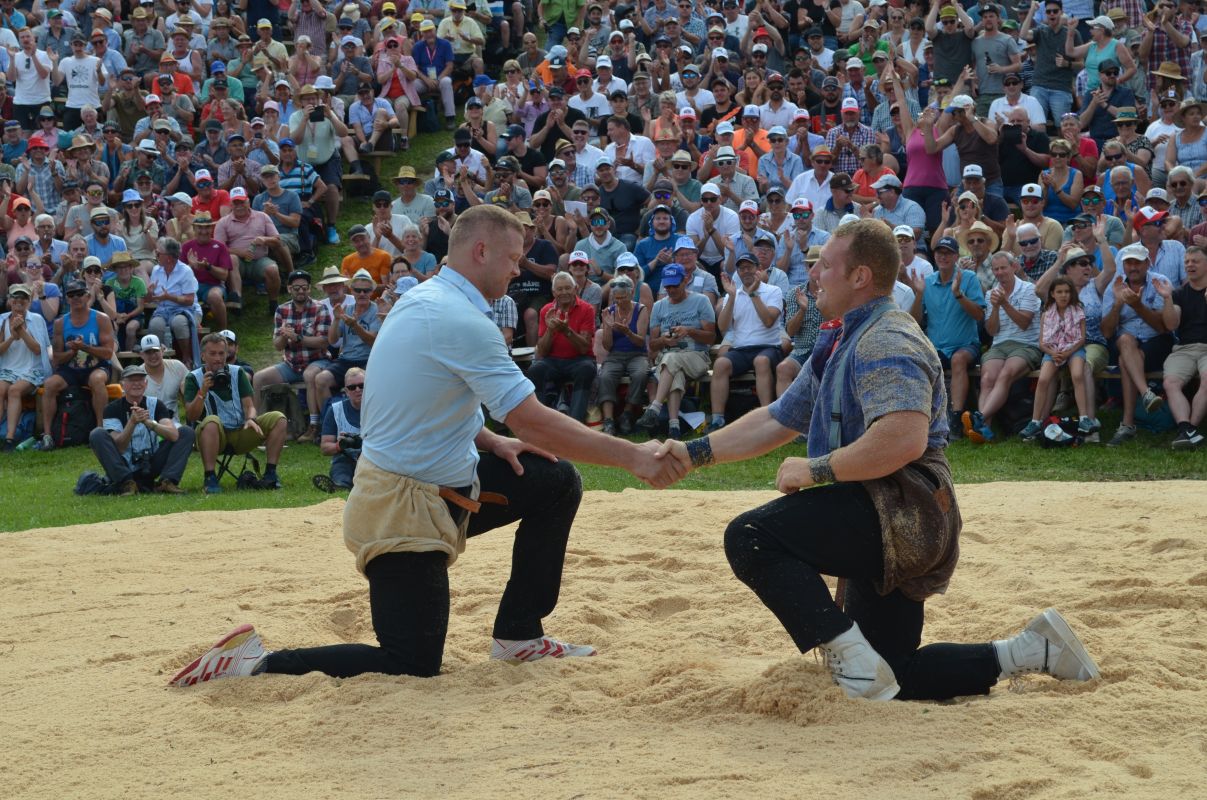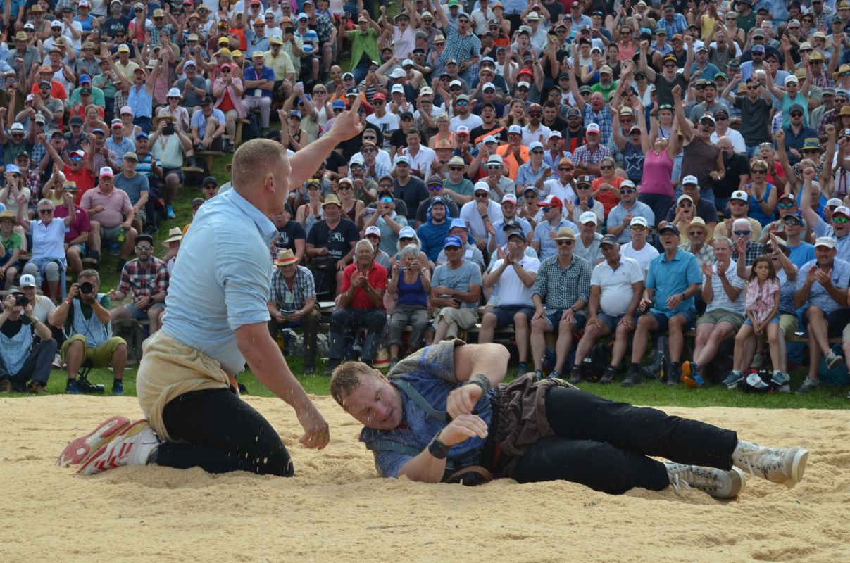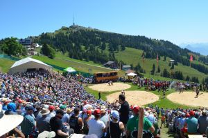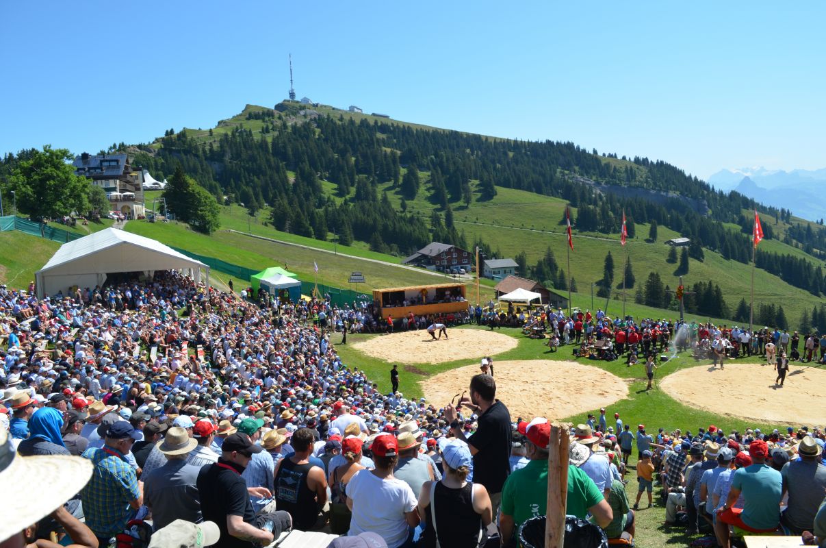 Einmal mehr präsentierte sich die Kulisse am Rigi Schwing- und Älplerfest einmalig. Rund 5'000 Zuschauerinnen und Zuschauer genossen einerseits das heisse Sommerwetter und andererseits fairen Schwingsport und ein attraktives Rahmenprogramm am höchstgelegenen Bergklassiker. Durch den Tag führte versiert der Rigi-Speaker Hugo Abegg. Neben den Schwingplätzen fand ein urchiges Rahmenprogramm mit Alphornbläsern, Fahnenschwingern, Ländlermusik, Jodelvorträgen, Geisslächlepfä, Steinstossen und einem grossen Alpaufzug am Nachmittag statt.