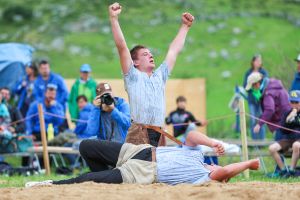 Am Samstag massen sich in Davos Sertig 183 Nachwuchsschwinger in vier Alterskategorien. Der Muttner Sämi Moser feierte erneut einen Festsieg.