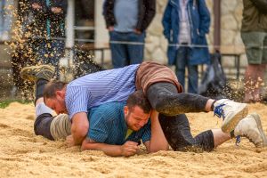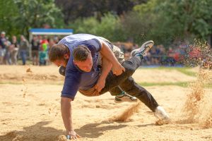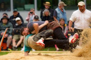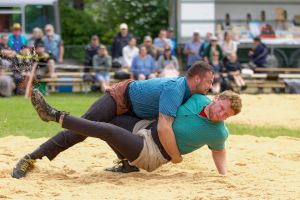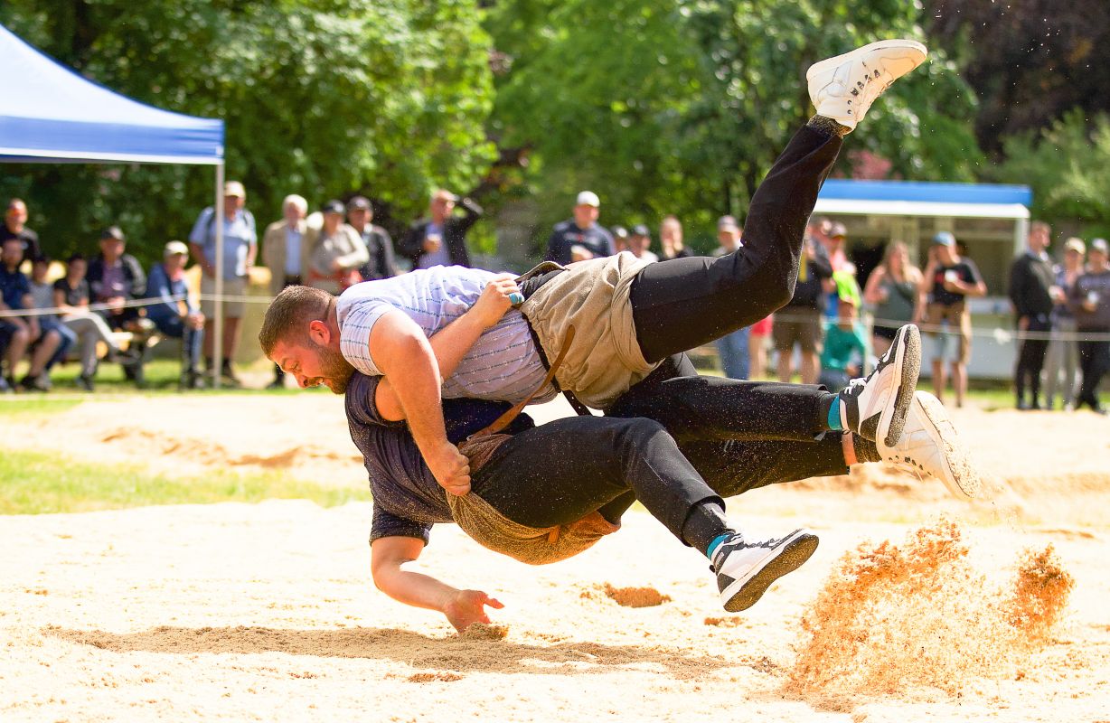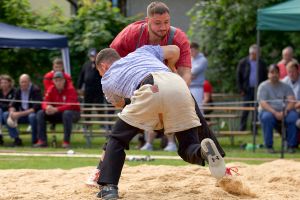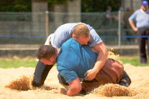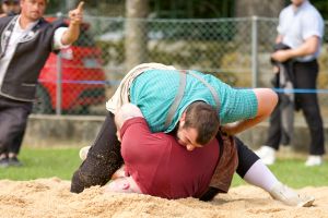 Après la premier prise, la volonté de Gapany se lit sur son visage. Lors de la deuxième prise, le gruyérien tire un puissant kurz et réussit à mettre les deux épaules de son adversaire dans la sciure après moins d’une minute de combat.