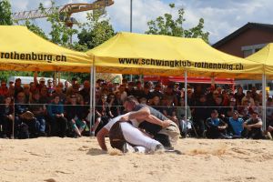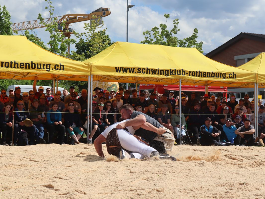 Bei schönstem Schwingwetter traten am 18. Mai 105 Schwinger aus der ganzen Innerschweiz zum Roteborger Schwinget an. Die Kulisse mit 1'500 Zuschauern verlieh den spannenden Zweikämpfen über den ganzen Tag einen würdigen Rahmen. Nach je einem gestellten Gang zu Beginn reihten der Einheimische Sven Lang und Jonas Troxler vom benachbarten Schwingklub Oberseetal jeweils vier Siege aneinander, womit sie im Schlussgang den Tagessieg unter sich ausmachten. Nach 1:45 Minuten konnte Jonas Troxler seinen Kontrahenten mit einem herrlichen Kurz und Nachdrücken am Boden bezwingen. Damit bejubelte Jonas Troxler seinen ersten Regionalfestsieg der Karriere und liess sich entsprechend feiern. Hinter Troxler klassierten sich mit Nils Theiler, Andri Krauer und Sven Lang gleich drei Athleten des organisierenden Schwingklub Rothenburg und Umgebung.