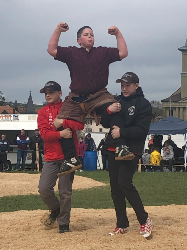 Girard Noé et Cardinaux Nathaël, tous deux du club des lutteurs de la Veveyse, n'arrivent pas à se départager en passe finale. Girard Noé est vainqueur de sa catégorie.