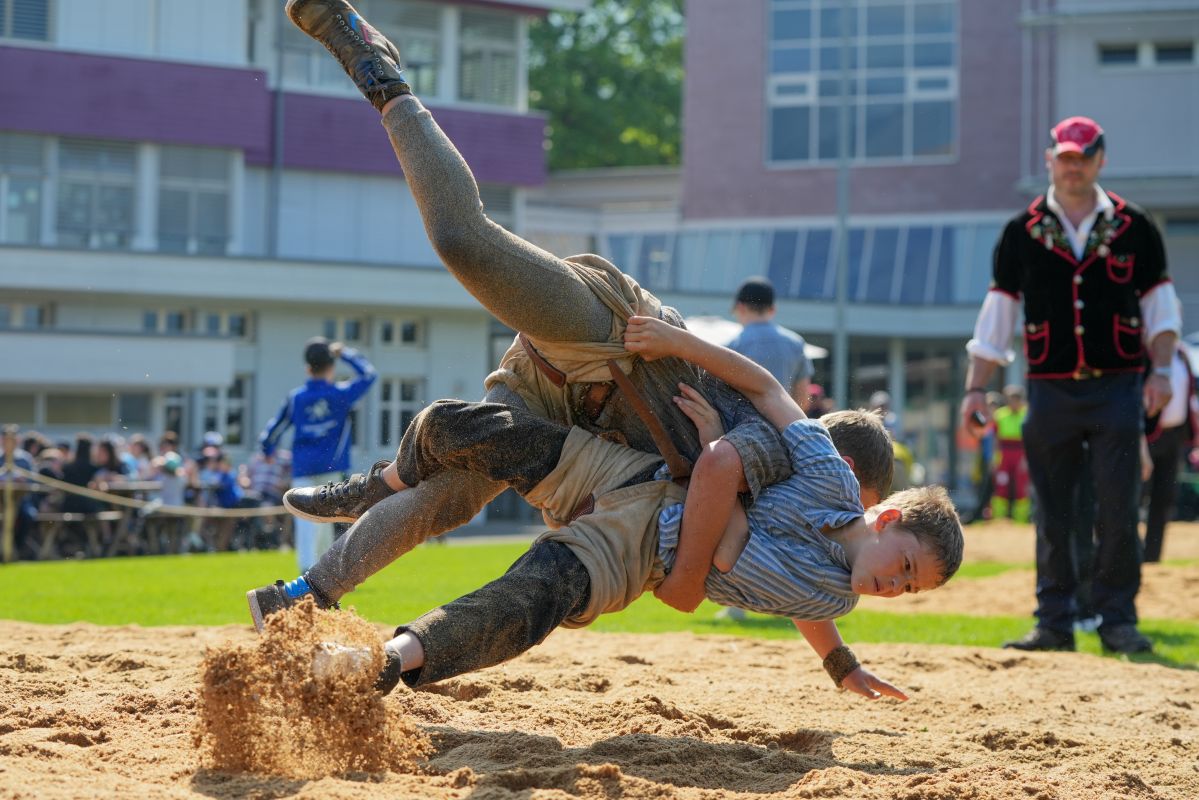 Ob- und Nidwaldner Kant. Nachwuchsschwingertag Kerns, 27.05.2023Schlussbericht Nombre de lutteurs208 Nombre de spectateurs500 retour à l‘aperçu Hurschler Stefan (o) - Kiser Adrian (u) Hurschler Stefan (o) - Rohrer Lukas (u) v.l.n.r Feiburghaus Levin, Achermann Flavian ,Burch Kilian, Küng Alain und Hurschler Stefan © René Burch