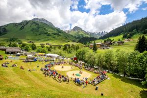 Der Davoser Christian Biäsch gewinnt das Rätikon-Schwinget in St. Antönien mit sechs Siegen überlegen. Im Schlussgang bezwingt er Marc Ursin Niederberger.