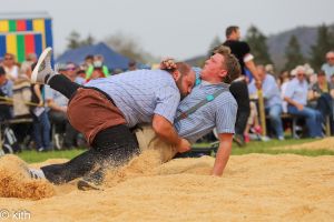Armon Orlik gewinnt im Schlussgang des Gibelschwingets gegen Marco Reichmuth nach 4:05 Minuten mit innerem Haken.