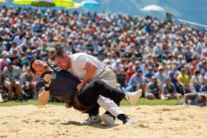Eine herrliche Aussicht präsentierte sich den Zuschauern in der ausverkauften Arena. Der Schwingplatz direkt unter dem Stockhorn mit den wunderschönen Berner Alpen im Hintergrund lud zum angreifen ein. Bereits ab dem ersten Gang wurde spektakuläre Schwingarbeit geboten.