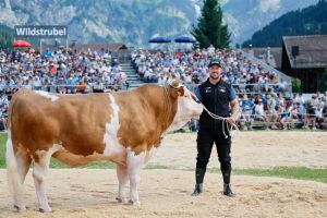 - 250629, Oberländisches Schwingfest Adelboden, Festsieger, Staudenmann Fabian mit Ehrendamen