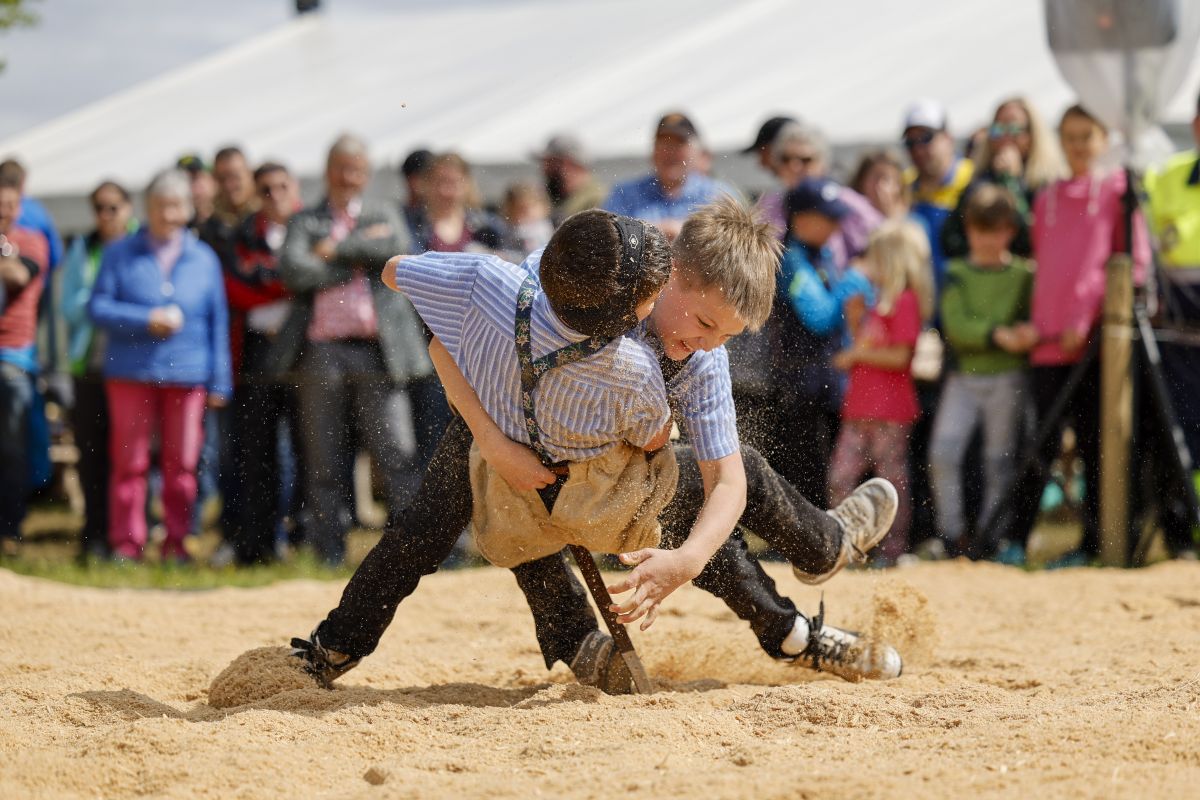 Der Einheimische Elias Ledermann (Wasen i.E., SK Sumiswald) gewinnt nach 41 Sekunden mit Kurz und Nachdrücken am Boden gegen Niklas von Atzigen (Ochlenberg, SK Herzogenbuchsee).