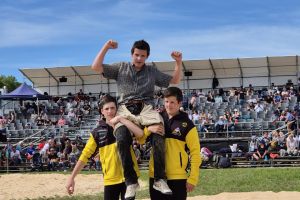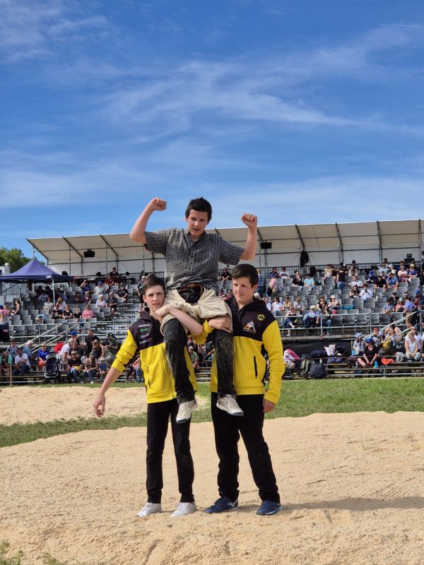 Bei den ältesten kam es zum Duell Berner Berner Jura Obaraargau. Tschan Mirco, Corgémont traff auf Friedli Simon, Bannwil. Tschan Mirco gewann nach kurzer Gangdauer mit Kniekehlengriff, nachdem sich Friedli bereits zuvor spektakulär über die Brücke retten konnte.