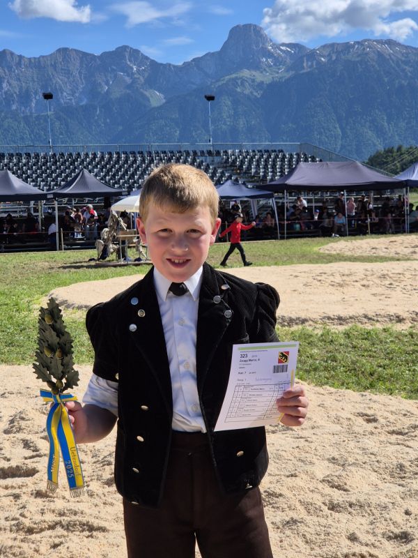 Bei den zweitjüngsten trifft der Emmentaler Zaugg Marco, vom Schwingklub Siehen auf den Mittelländer Mader Finn, vom Schwingklub Schwarzenburg. Zaugg Marco, Schangnau gewann nach gut 2 Minuten mit Lätz und Nachdrücken am Boden.