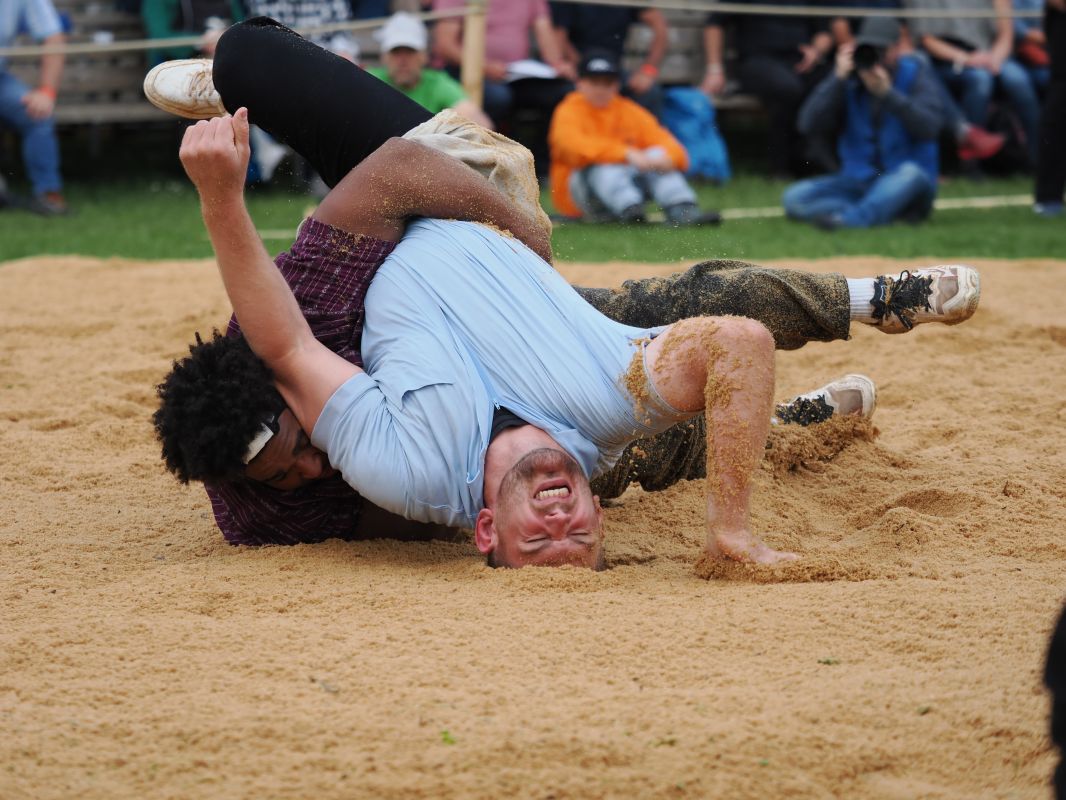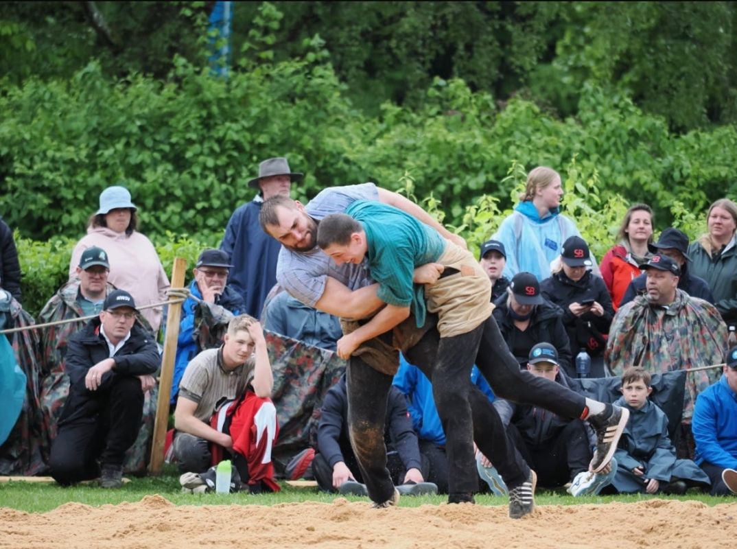 Unter Sonnenschein durften 2 Gänge morgens geschungen werden. Ab Gang 3 wurde das Wetter schlechter, trotzdem trotzten die Eidgenossen dem schlechteren Wetter und fanden sich Alle vorne in der Zwischenrangliste wieder. Nach der Mittagspause im 4. Gang besiegte Alpiger Nick im Eidgenossenduell den Berner Gast Käser Remo nach einem Angriff mit Konter platt.