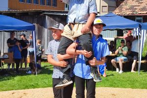 Bei den Jüngsten (Jg. 2015-2017) duellierten sich im Schlussgang Arnold Timo vom Schwingklub Cham-Ennetsee und der Obwaldner Gast Britschgi Josa. Bereits nach 14 Sekunden konnte Britschgi mit Nachdrücken am Boden den Gang für sich entscheiden.