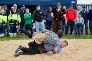 Der Einheimische Elias Ledermann (Wasen i.E., SK Sumiswald) gewinnt nach 2 Minuten 24 Sekunden mit Kurz und Plattwurf gegen Luca Schmidg (Muotathal, SK Muotathal)