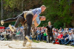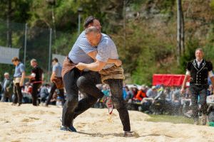 Die Einteilung entschied sich dagegen bereits im ersten Gang die Eidgenossen gegeneinander einzuteilen. Bei den Spitzenpaarungen gab es eine Überraschung. Gästeschwinger Christoph Bäriswil bezwang Severin Schwander. Weiter zeigte Wittwer Jan, einmal mehr seine starke Defensivarbeit, er konnte Fabian Staudenmann einen gestellten abtrotzen. Die weiteren Eidgenossen starteten souverän in den Wettkampf und gewannen alle nach kurzer Gangdauer. Ledermann Michael gegen von Büren Stephan, Walther Adrian gegen Wittwer Josias, Gnägi Florian gegen Zimmermann Nicolas, Gobeli Patrick mit einem herrlichen Armzug gegen Pirkheim Elias und Aeschbacher Matthias in souveräner Manier gegen Renfer Lukas.