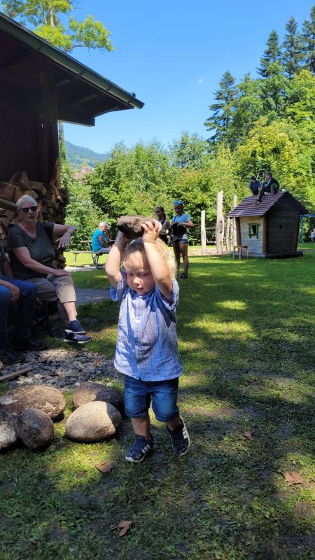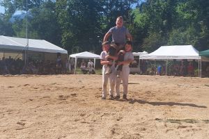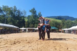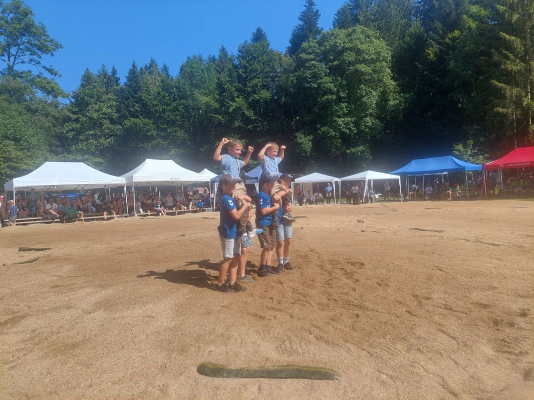 Zu einem spannenden Kräftemessen kam es neben den Schwingplätzen. Über 60 Teilnehmer übten sich im Steinstossen. Der Wettkampf fand in fünf Kategorien statt. Das Gewicht der Wettkampfsteine betrug zwischen 6 und 27 Kilogramm. Laimbacher Patrik, Iten Finn, Gasser Fabian, Jakober Dwayne und Jakober Lewis erzielten die besten Ergebnisse und freuten sich über die Siegerpreise.
