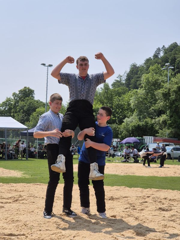 Bei den jüngsten kam es zu einger ganz speziellen Schlussgang Affiche, traffen doch zwei Zwillingsbrüder aufeinander. Silvan Steiner stieg mit einem halben Punkt Vorsprung auf seinen Brunder Fabian in den Schlussgang. Die beiden Schwarzenburger aus Mamishaus gewannen die ersten 5 Gänge. Silvan liess auch im Schlussgang nichts anbrennen und gewann bereits im ersten Zusammengreifen mit Gammen und Nachdrücken.