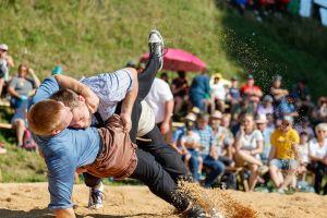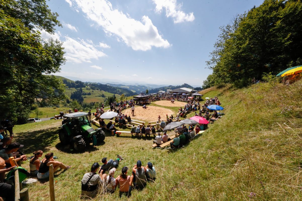 Bei wunderschönem Sommerwetter zieht es viele Schaulustige ans traditionelle Lüderenschwinget oberhalb von Langnau und Wasen.