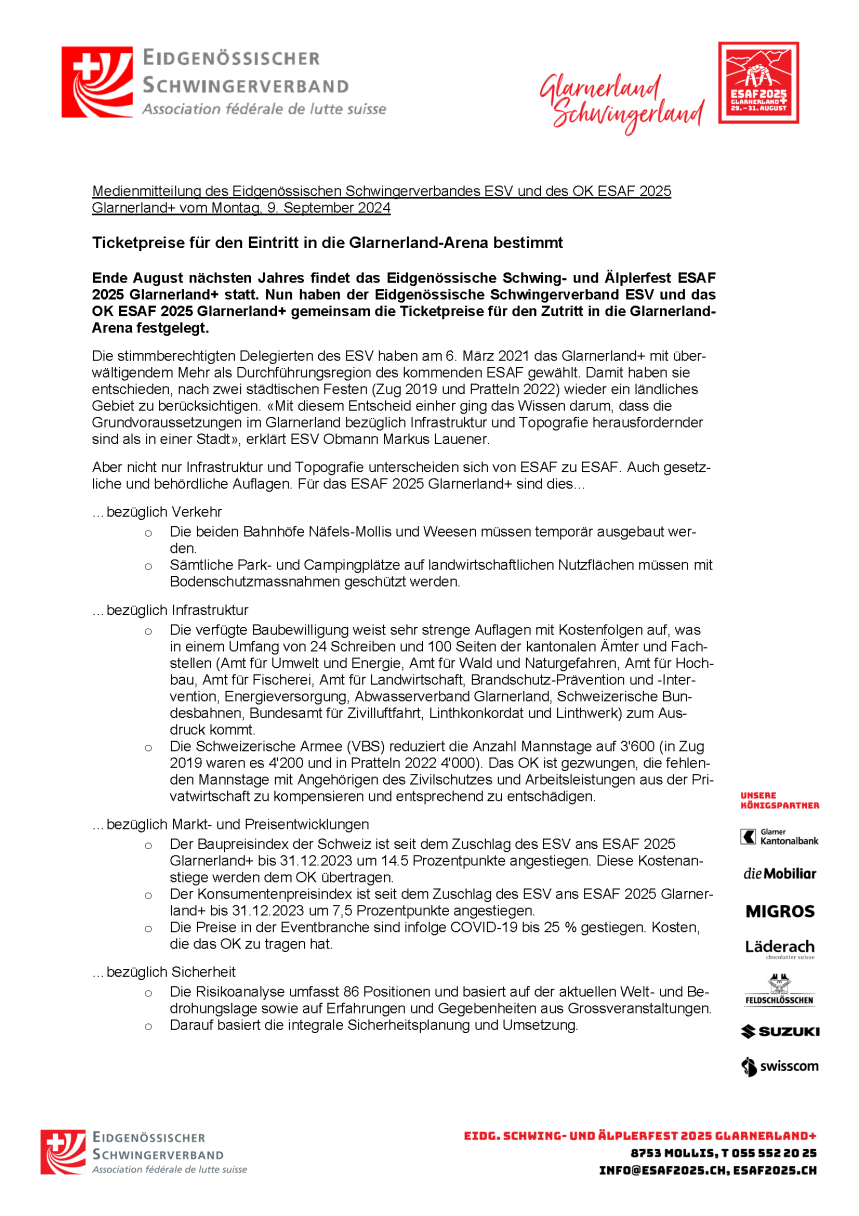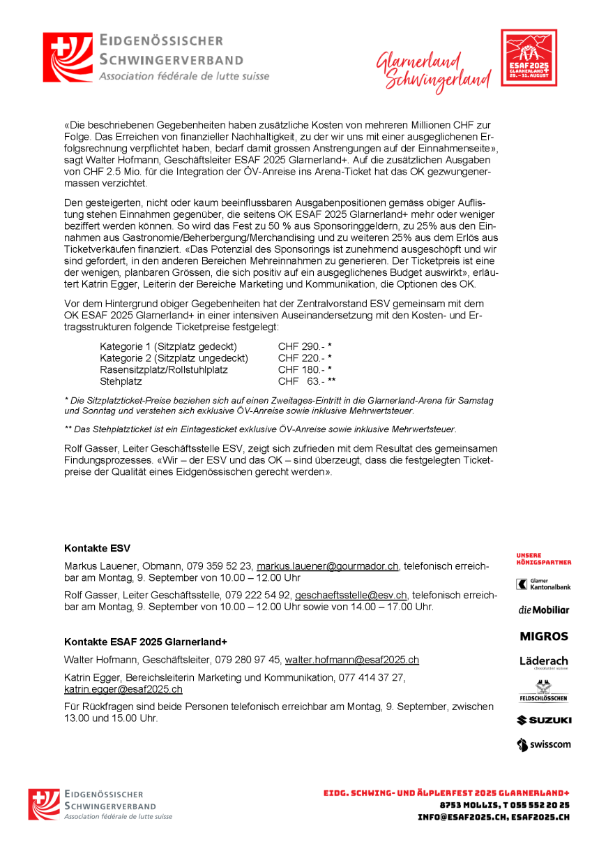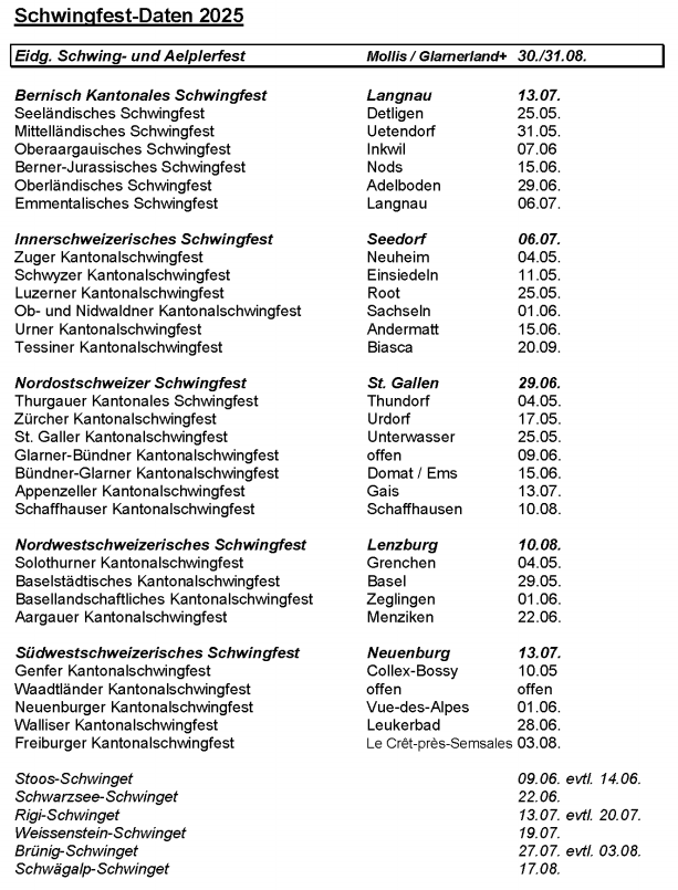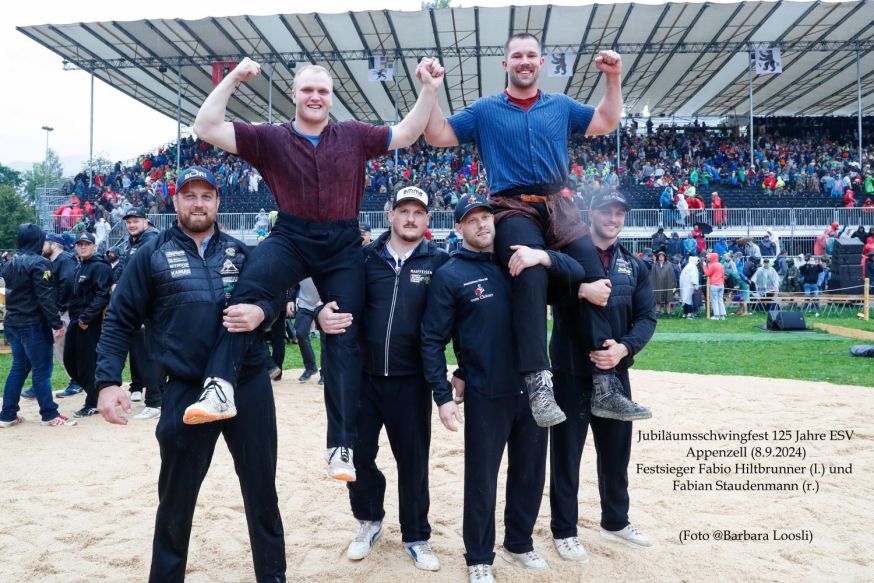 Jubiläumsschwingfest 125 Jahre ESVBerner Doppelsieg Mit vier Jahren Verspätung konnte das Jubiläumsschwingfest 125 Jahre ESV zur Zufriedenheit der 19'580 Zuschauer gebührend über die Bühne gehen. Die Berner feierten dabei mit dem Saisondominator Fabian Staudenmann und dem völlig entfesselten 19jährigen Fabio Hiltbrunner einen Doppelsieg. Staudenmann und Hiltbrunner – die Sieger Die Teilverbände im Quervergleich Rolf Gasser, Leiter Geschäftsstelle ESV Fête du Jubilé 125ème AFLS à AppenzellTriomphe bernois Après quatre années d’attente, la fête de lutte du 125e anniversaire de l'AFLS s'est déroulée comme il se doit, à la satisfaction des 19'650 spectateurs. Les Bernois y ont fêté une double victoire avec le dominateur de la saison Fabian Staudenmann et le jeune Fabio Hiltbrunner, 19 ans, complètement déchaîné. L'étudiant en mathématiques sait jouer de sa force aussi bien à l'arrêt qu'au sol et n'a en outre pas perdu une seule passe au cours de la saison 2024. La victoire finale après 9:42 minutes de combat sur le Grison Armon Orlik avec un saut croisé a été un chef-d'œuvre tactique. Après sa victoire à la fête du Kilchberg et 2021, Fabian peut désormais se targuer d'avoir remporté deux fois une fête de lutte à caractère fédéral. Si Fabian parvient à reproduire la performance qu'il a réalisée cette année lors de la saison 2025, il sera un candidat très sérieux au titre de roi de la lutte à Glaris. Blaise Decrauzat Jubiläumsschwingfest 125 Jahre ESV